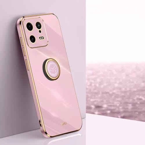 Para Xiaomi 13 Xinli Straight Edge 6D Electroplate TPU Funda para Teléfono con Soporte para Anillo (Cereza Púrpura)