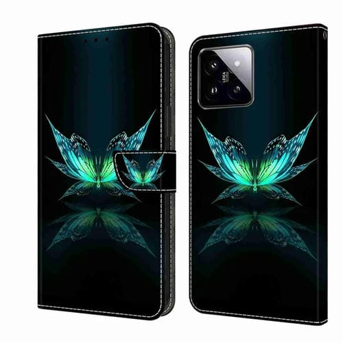 Para Xiaomi 14 Crystal 3D Funda Protectora De Cuero Para Teléfono A Prueba De Golpes (Reflection Dutterfly)