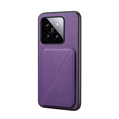 Para Xiaomi 14 D04 Funda Para Teléfono Con Soporte Para Ranura Para Tarjeta Dual Con Textura De Pantorrilla (Púrpura)