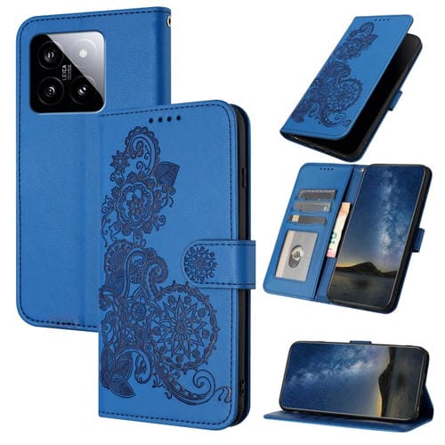 Para Xiaomi 14 Datura Flower Funda De Teléfono De Cuero Con Tapa En Relieve (Azul)