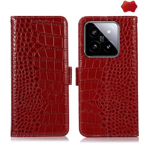 Para Xiaomi 14 Funda Para Teléfono De Cuero De Vaca Con Capa Superior De Cocodrilo (Rojo)