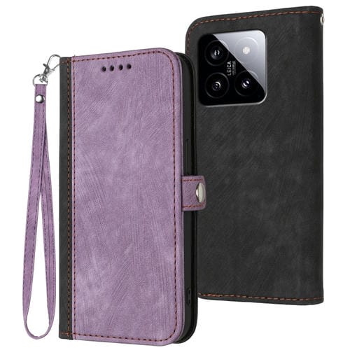 Para Xiaomi 14 Hebilla Lateral Doble Pliegue Correa De Mano Funda De Cuero Para Teléfono (Púrpura)