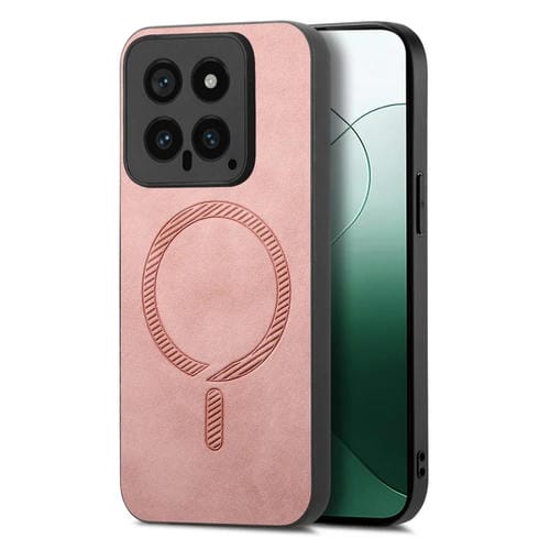 Para Xiaomi 14 Pro 5G Color Sólido Retro Magsafe Pu Funda Para Teléfono Con Contraportada (Rosa)