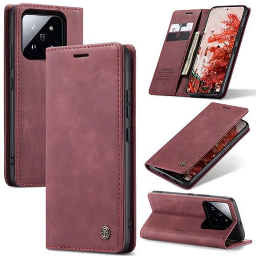 Para Xiaomi 14 Pro Caseme 013 Funda Para Teléfono De Cuero Con Tapa Horizontal Multifuncional (Rojo Vino)