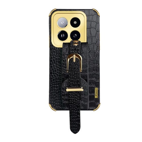 Para Xiaomi 14 Pro Correa De Muñeca Galvanizada Funda Trasera De Cuero De Cocodrilo (Negro)