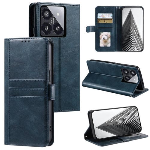 Para Xiaomi 14 Pro Funda De Cuero Para Teléfono Con Billetera Simple Para 6 Tarjetas (Azul Marino)