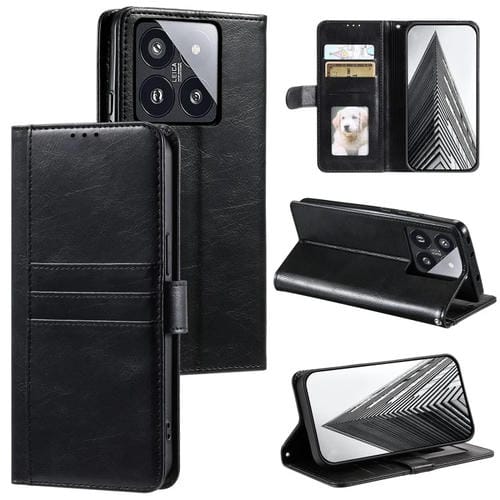 Para Xiaomi 14 Pro Funda De Cuero Para Teléfono Con Billetera Simple Para 6 Tarjetas (Negro)