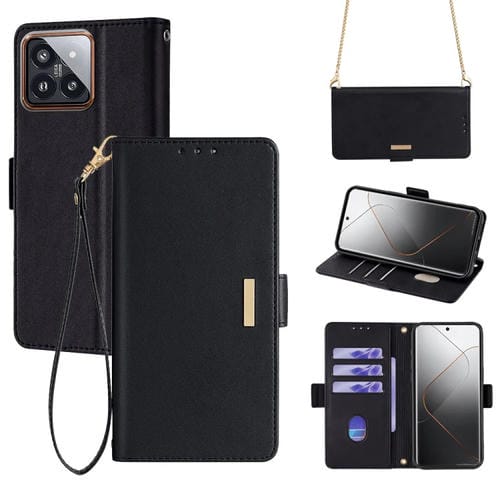 Para Xiaomi 14 Pro Funda De Cuero Para Teléfono Con Cadena Cruzada (Negro)