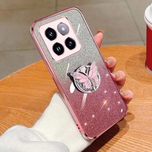 Para Xiaomi 14 Pro Funda Para Teléfono De Tpu Con Soporte De Mariposa Con Brillo Degradado Plateado (Rosa)