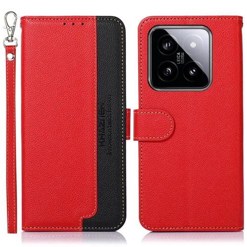 Para Xiaomi 14 Pro Khazneh Litchi Texture Funda Para Teléfono Rfid De Cuero (Rojo)