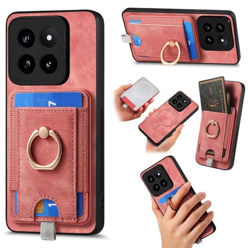 Para Xiaomi 14 Pro Retro Splitable Magnetic Card Bag Funda De Cuero Para Teléfono (Rosa)