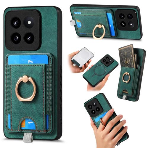 Para Xiaomi 14 Pro Retro Splitable Magnetic Card Bag Funda De Cuero Para Teléfono (Verde)