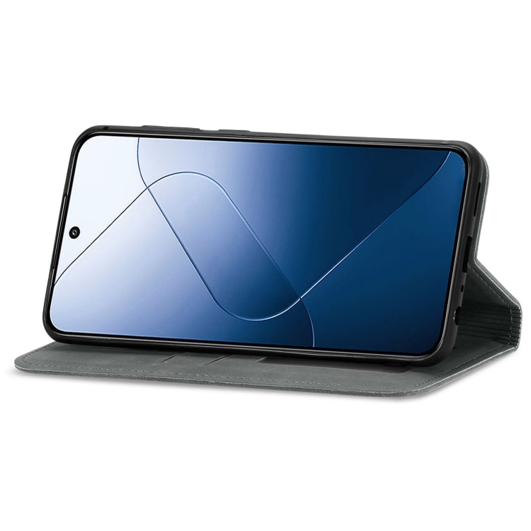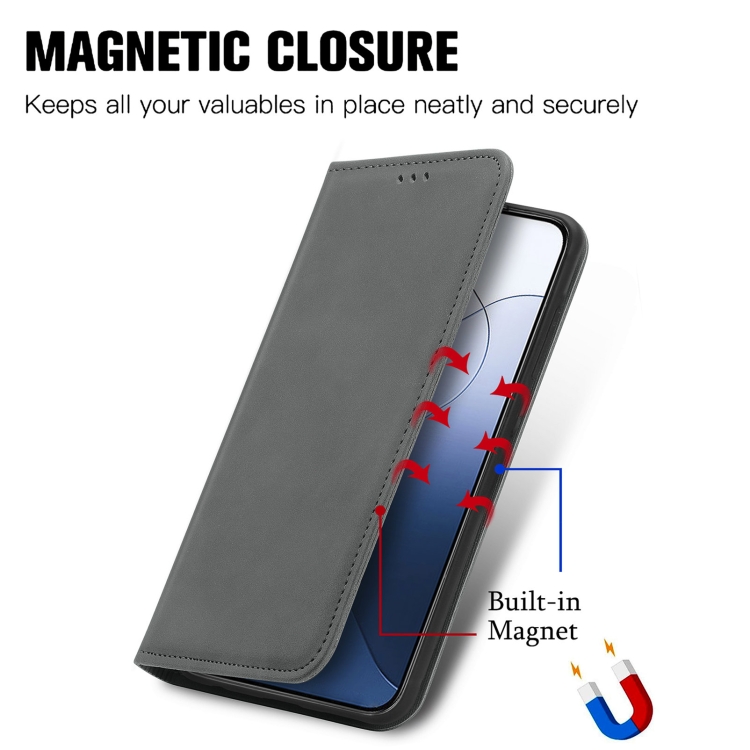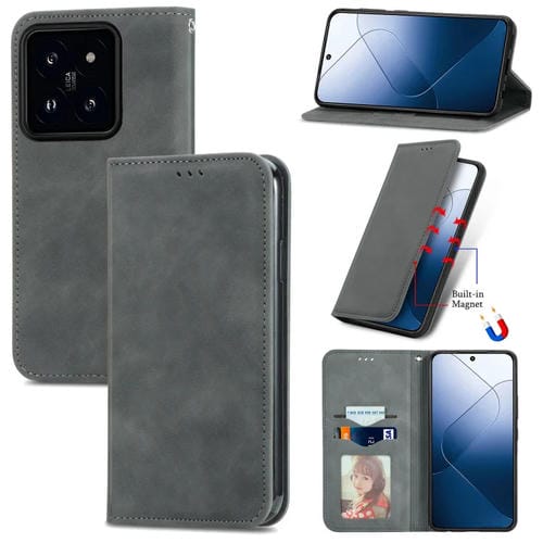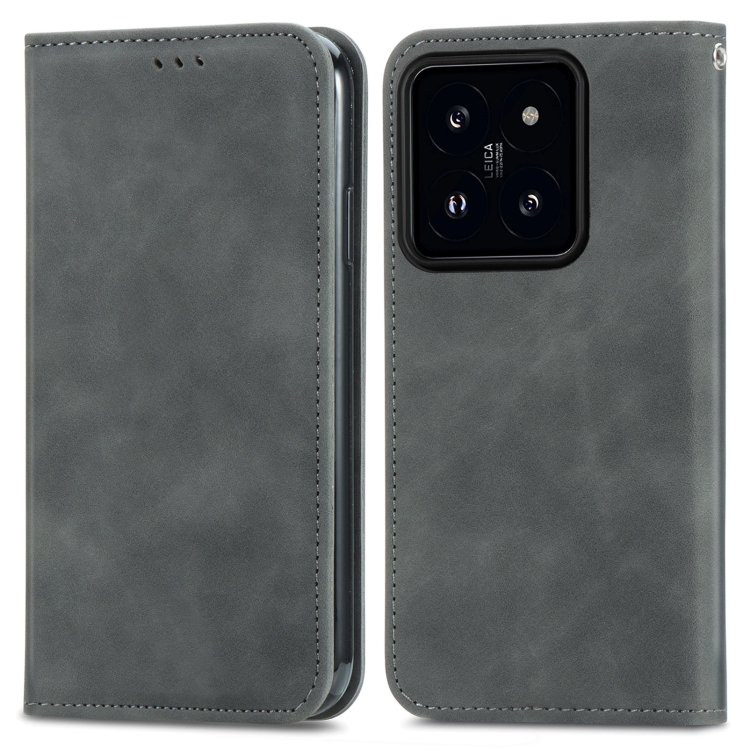 Para Xiaomi 14 Retro Skin Feel Funda De Teléfono De Cuero Con Tapa Magnética (Gris)