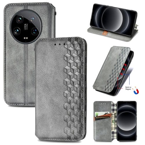 Para Xiaomi 14 Ultra Cubic Grid Funda De Teléfono De Cuero Magnético Prensado (Gris)
