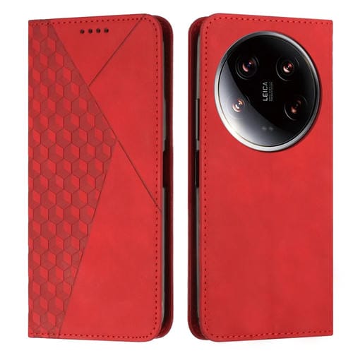 Para Xiaomi 14 Ultra Diamond Splicing Skin Feel Funda De Teléfono De Cuero Magnético (Rojo)