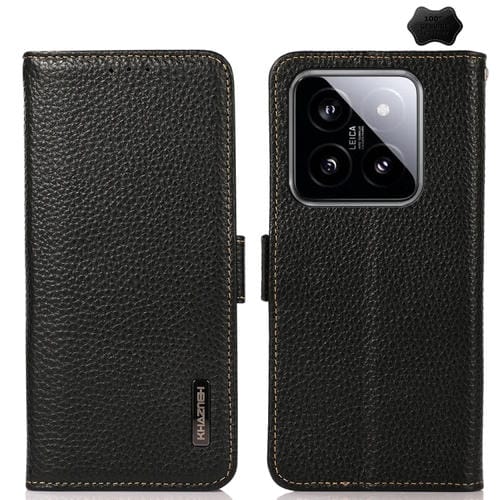 Para Xiaomi 14 Ultra Khazneh Funda Para Teléfono Rfid De Cuero Genuino Litchi Lateral Magnético (Negro)
