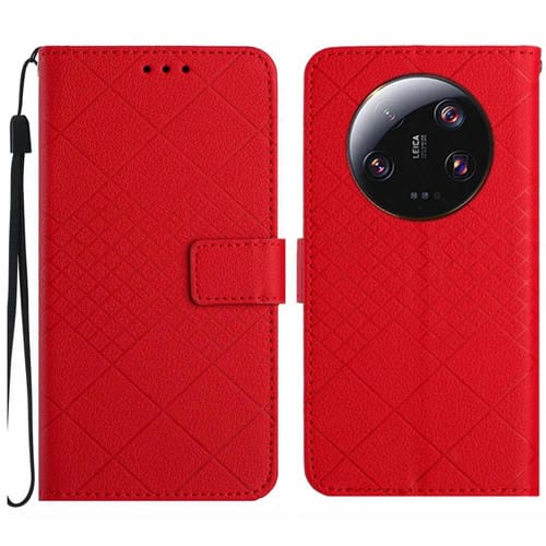 Para Xiaomi 14 Ultra Rhombic Grid Texture Funda De Cuero Para Teléfono (Rojo)