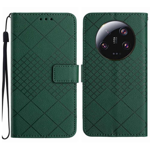 Para Xiaomi 14 Ultra Rhombic Grid Texture Funda De Cuero Para Teléfono (Verde)