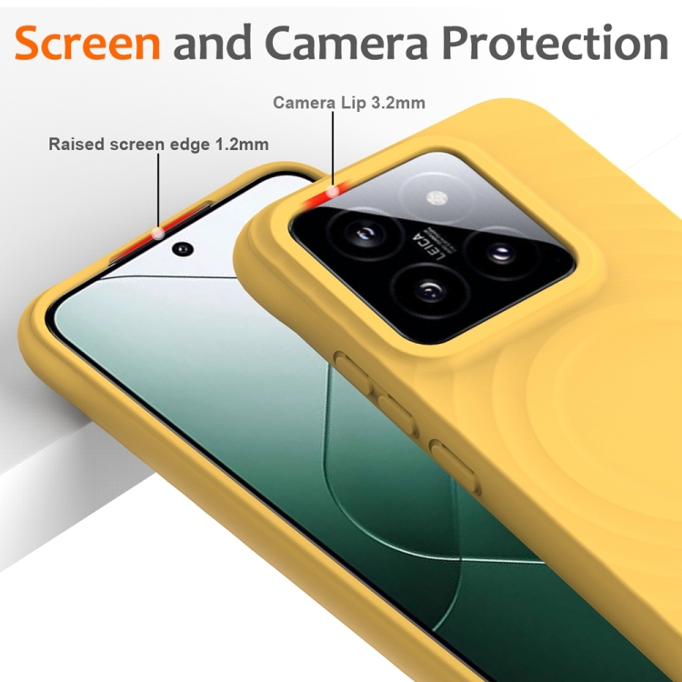 Para Xiaomi 14 Wave Texture Magsafe Funda De Teléfono De Silicona Líquida Magnética (Amarillo)