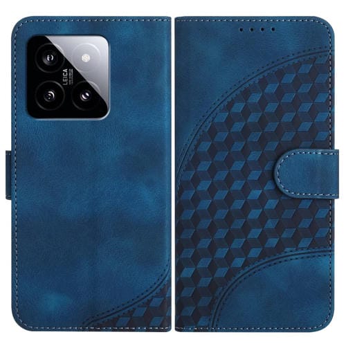Para Xiaomi 14 Yx0060 Funda De Cuero Para Teléfono Con Relieve Y Cabeza De Elefante Con Cordón (Azul Real)