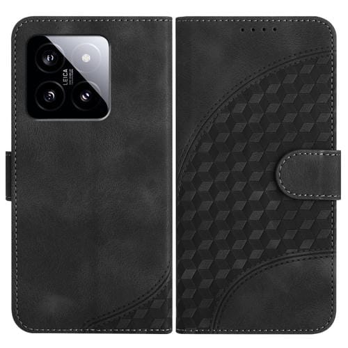 Para Xiaomi 14 Yx0060 Funda De Cuero Para Teléfono Con Relieve Y Cabeza De Elefante Con Cordón (Negro)