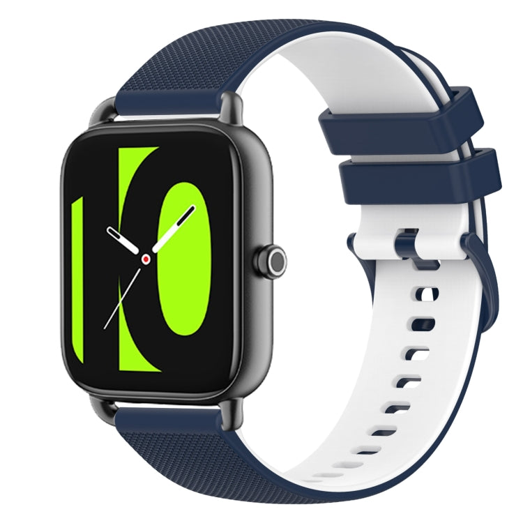 Banda de Reloj de Silicona 22mm para Xiaomi Haylou Rs4 Ls12 Dos Colores a Cuadros (Azul Oscuro + Blanco)