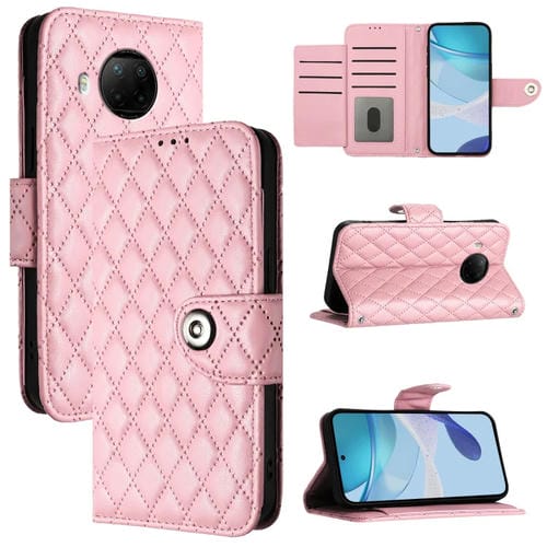 Para Xiaomi Mi 10T Lite 5G Funda para Teléfono con Tapa de Cuero con Textura Romboidal y Cordón (Rosa)