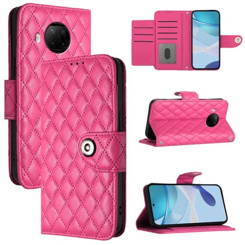 Para Xiaomi Mi 10T Lite 5G Funda para Teléfono de Cuero con Tapa con Textura Romboidal y Cordón (Rojo Rosa)