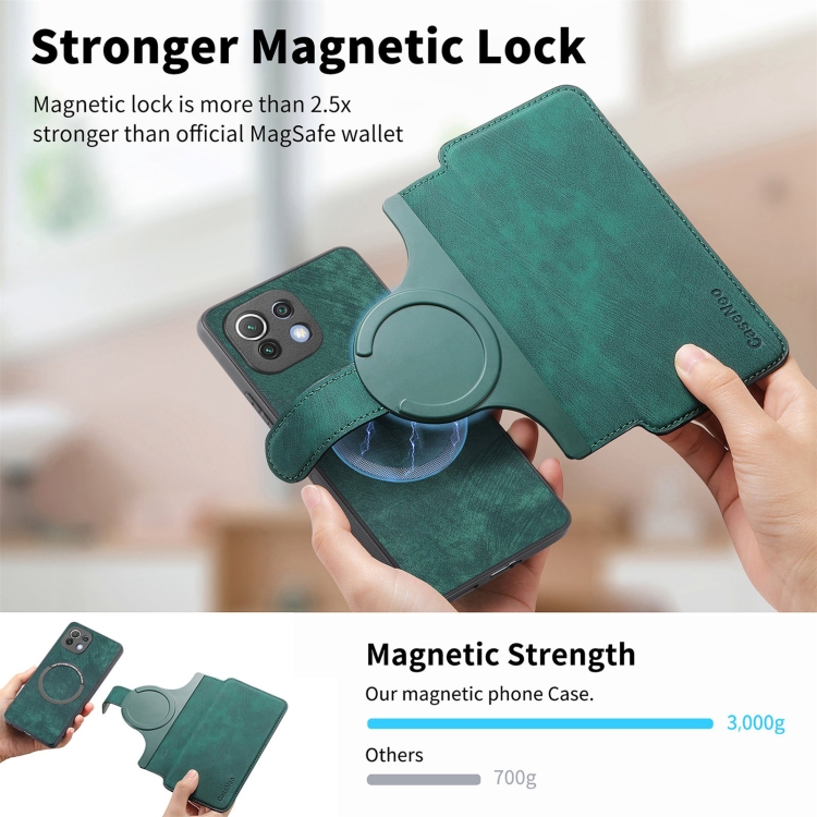 Funda Neo Magsafe Rfid Antirrobo de Cuero Retro para Xiaomi Mi 11 Lite (Verde)