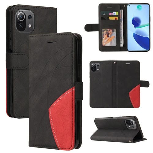 Para Xiaomi Mi 11 Lite Doble Color Doblicing Horizontal Flip Pu Funda de Cuero con Soporte y Tragamonedas y Billetera (Negro)