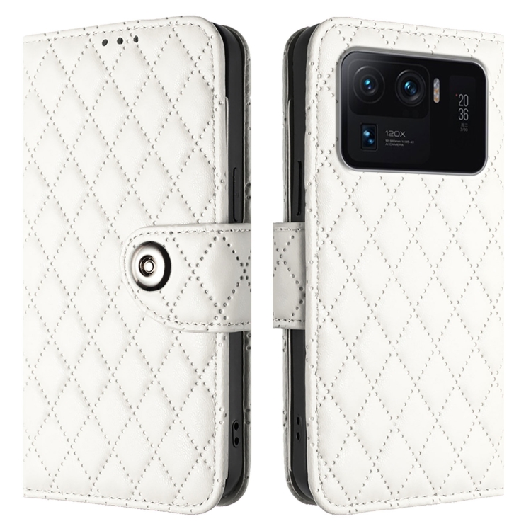 Para Xiaomi Mi 11 Ultra Rhombic Texture Funda de Cuero con Tapa para Teléfono con Cordón (Blanco)