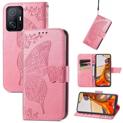 Para Xiaomi Mi 11T / 11T Pro Butterfly Love Flowers En Relieve Funda de Cuero Horizontal Flip con Titular y Ranuras para Tarjetas y Filtera (Rosa)