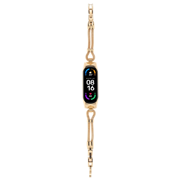 Estuche Unibody de Metal para Xiaomi Mi Band 7 / 6 / 5 / 4 / 3 con Cadena de Cobre (Oro)