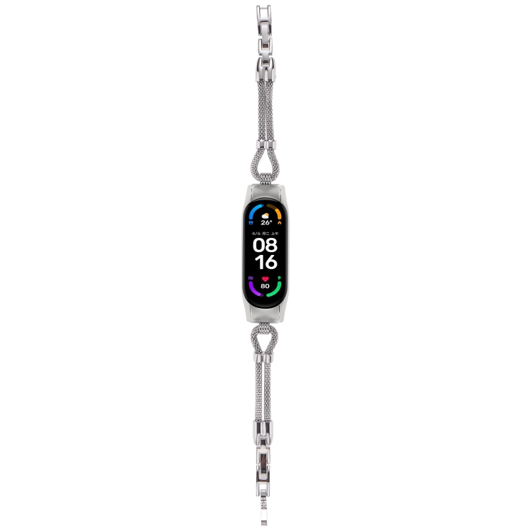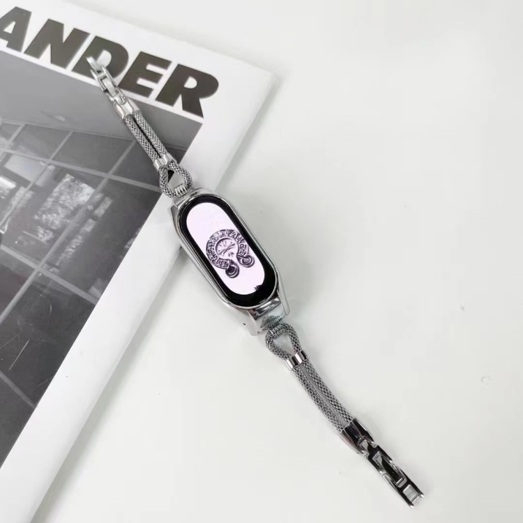 Estuche Unibody de Banda Metal con Cadena de Cobre para Xiaomi Mi Band 7 / 6 / 5 / 4 / 3 (Plata)
