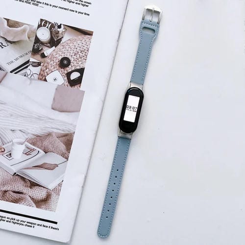 Correa de Reloj de Cuero para Xiaomi Mi Band 7 con 8 Hebillas (Azul)