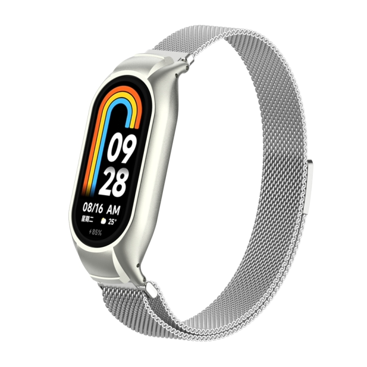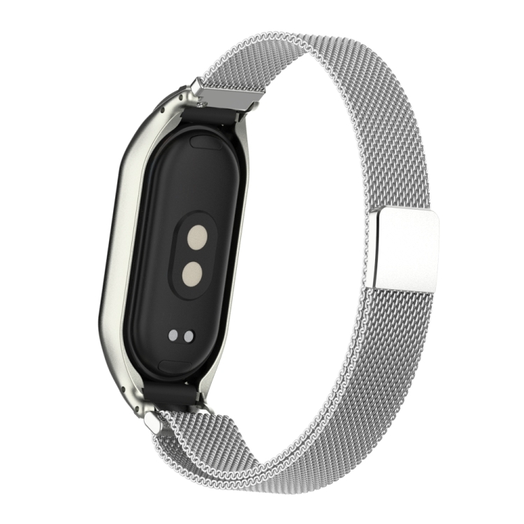 Caja de Metal Integrada para Xiaomi Mi Band 8 + Banda Magnética Milanesa (Plata)