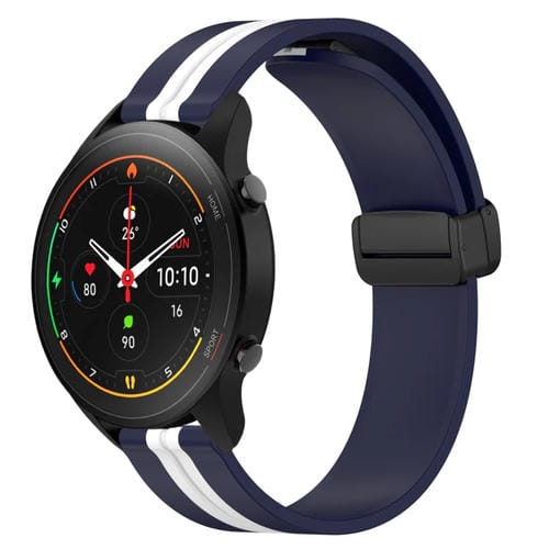 Correa de Silicona para Xiaomi Mi Watch S1 Pro con Cierre Magnético Plegable 22mm (Azul Medianoche + Blanco)