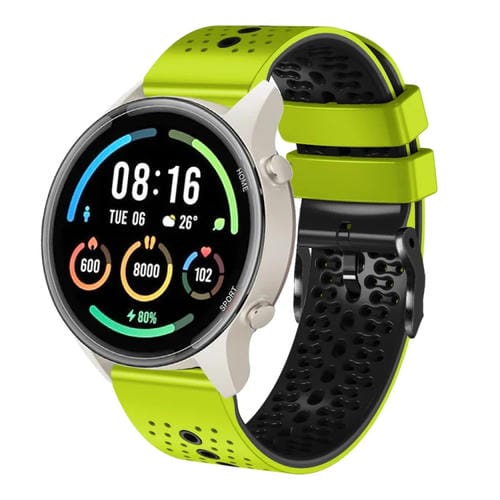 Banda de Reloj Xiaomi Mi Watch Sport 22mm Silicona Dos Colores Perforada (Lima + Negro)