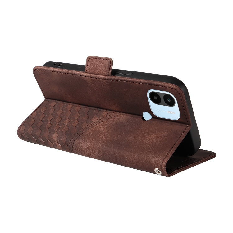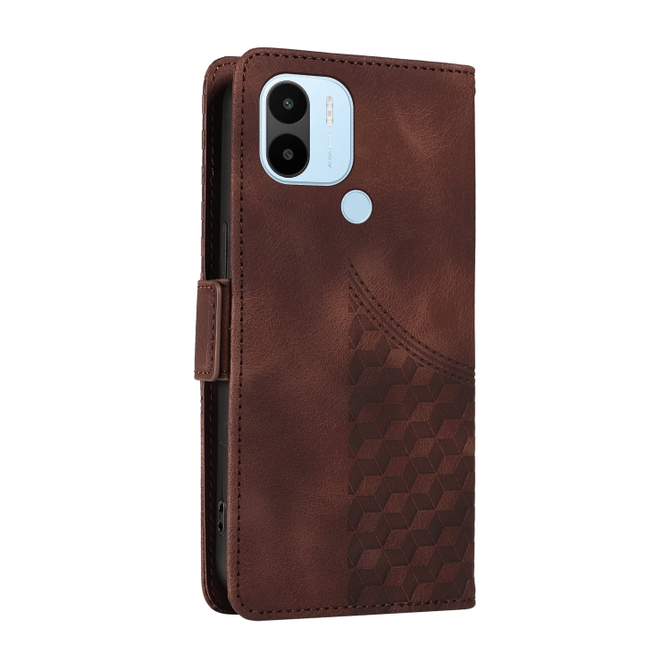 Para Xiaomi Poco C50 / C51 Funda para Teléfono de Cuero Estrellado con Rombos En Relieve (Marrón)