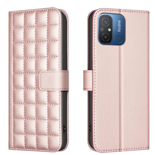 Para Xiaomi Poco C55 / Redmi 12C Funda de Cuero para Teléfono con Textura Cuadrada (Oro Rosa)