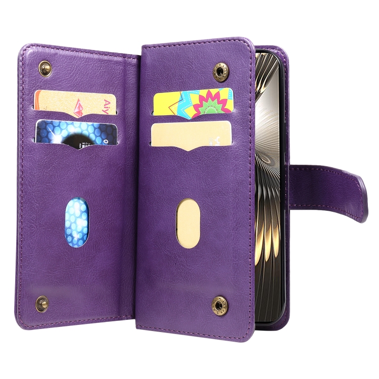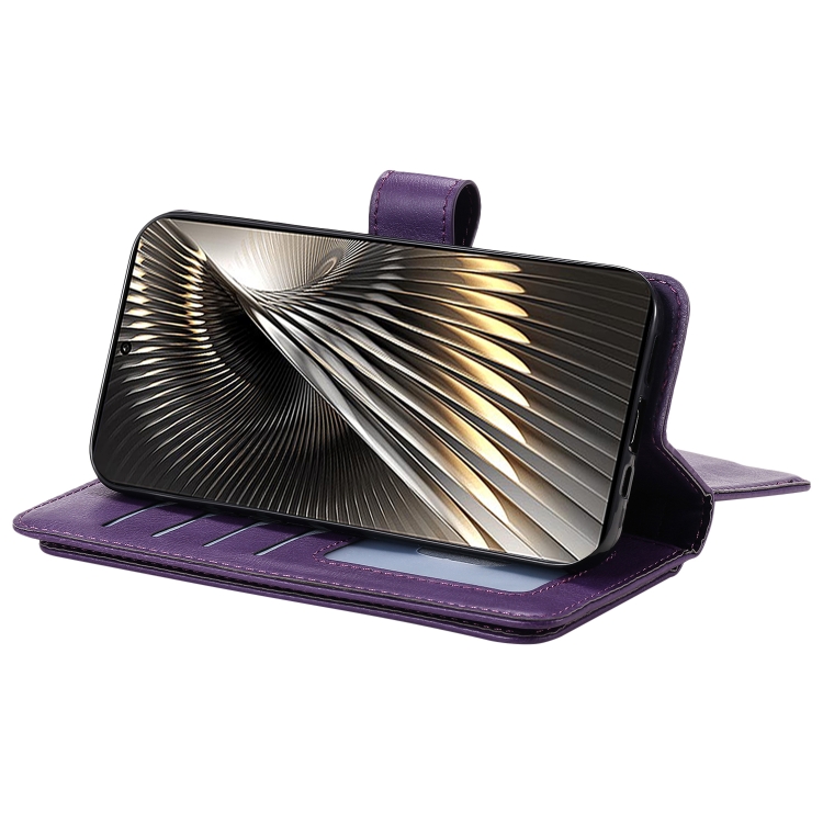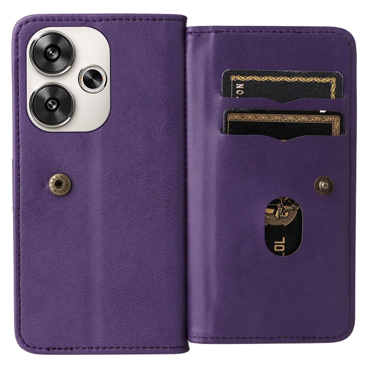 Para Xiaomi Poco F6 Cartera Multifunción 10 Ranuras para Tarjetas Funda de Cuero para Teléfono (Violeta)