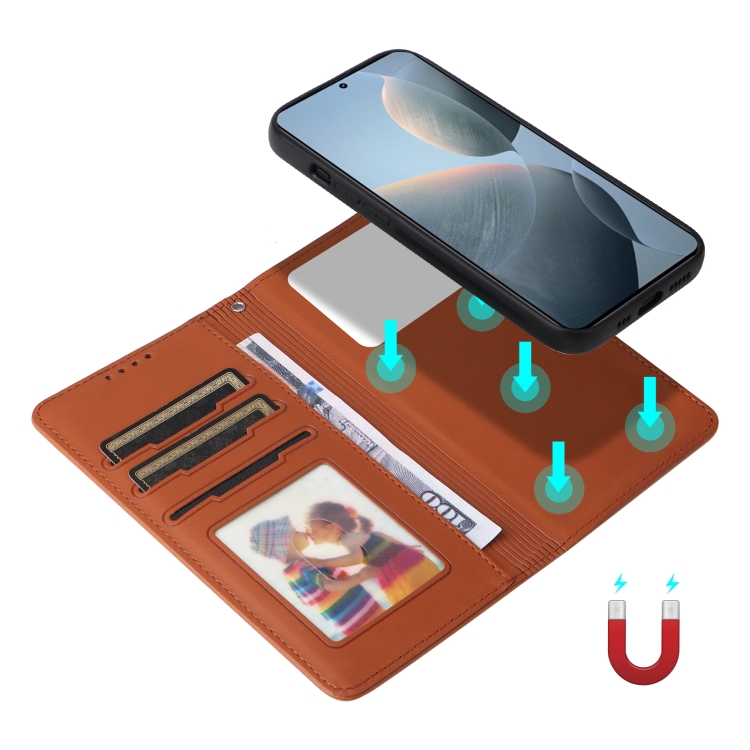 Para Xiaomi Poco F6 Pro Betopnice Bn-005 2 En 1 Funda de Teléfono de Cuero Genuino Desmontable Desmontable (Marrón)