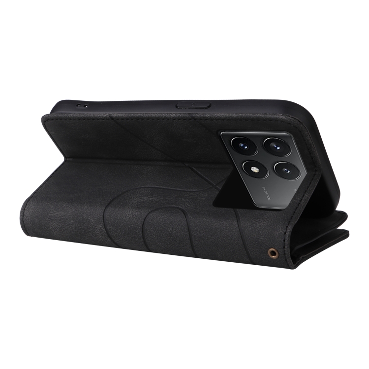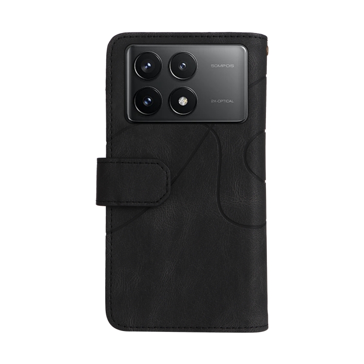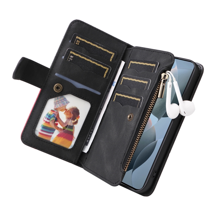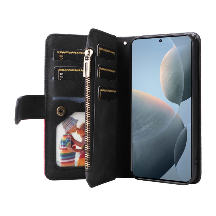 Para Xiaomi Poco F6 Pro Funda de Cuero para Teléfono con Billetera con Cremallera y 9 Ranuras para Tarjetas de Doble Color (Negro)