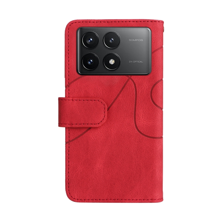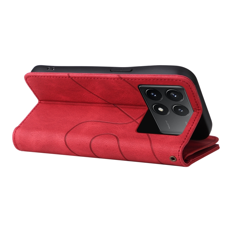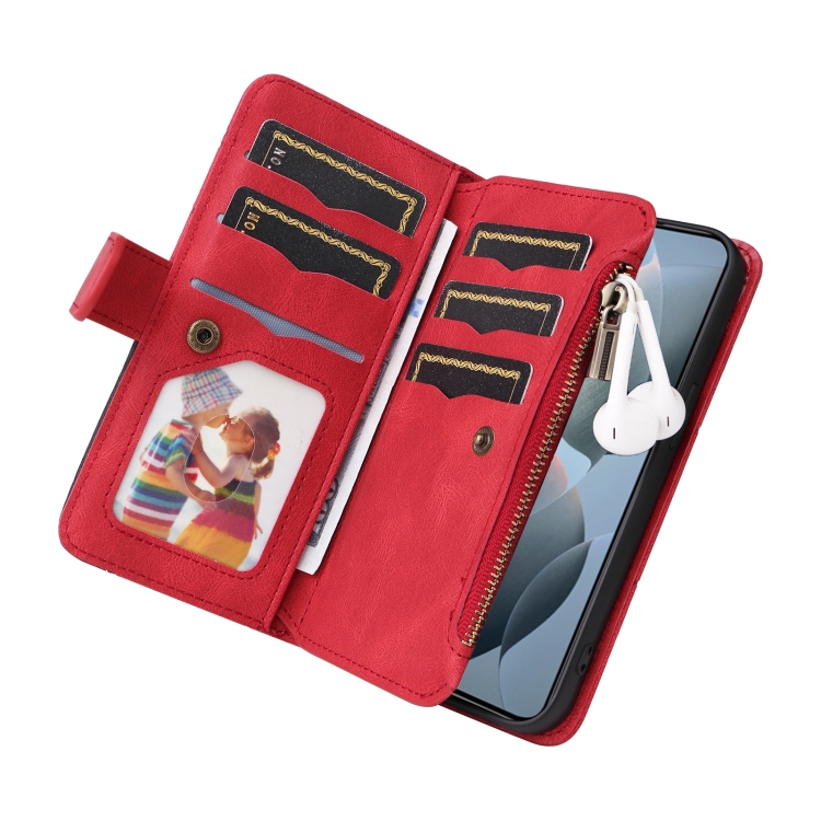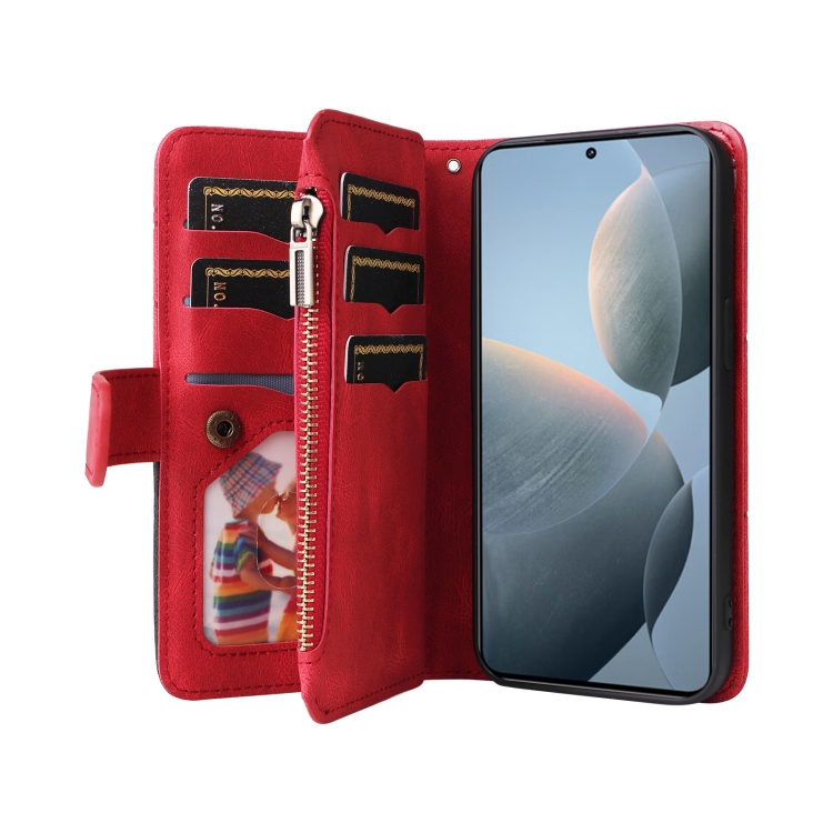 Para Xiaomi Poco F6 Pro Funda de Cuero para Teléfono con Billetera con Cremallera y 9 Ranuras para Tarjetas de Doble Color (Rojo)