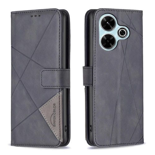 Para Xiaomi Poco M6 4G / Redmi 13 4G Funda de Cuero para Teléfono con Textura de Rombo y Hebilla Magnética (Negro)