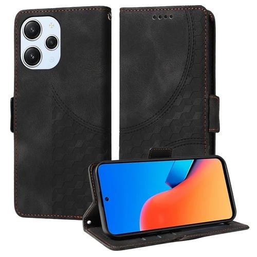 Para Xiaomi Poco M6 Pro 5G Funda para Teléfono de Cuero Estrellado con Rombos En Relieve (Negro)