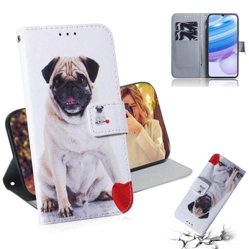 Para Xiaomi Redmi 10X Pro 5G Funda de Cuero Abatible Horizontal con Dibujo En Color con Soporte, Ranura para Tarjeta y Billetera (Pug)