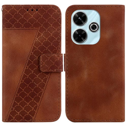 Para Xiaomi Redmi 13 4G Funda de Cuero En Relieve con Siete Formas (Marrón)