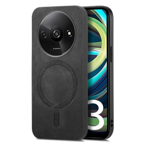 Para Xiaomi Redmi A3 Color Sólido Retro Magsafe Pu Funda para Teléfono con Contraportada (Negro)