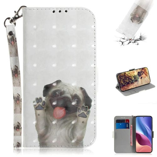 Para Xiaomi Redmi K40 / K40 Pro / Poco F3 3D Dibujo de Color Dibujo Horizontal Flip Horizontal con Titular y Slots de Tarjetas y Billetera y Lanyard (Pug)